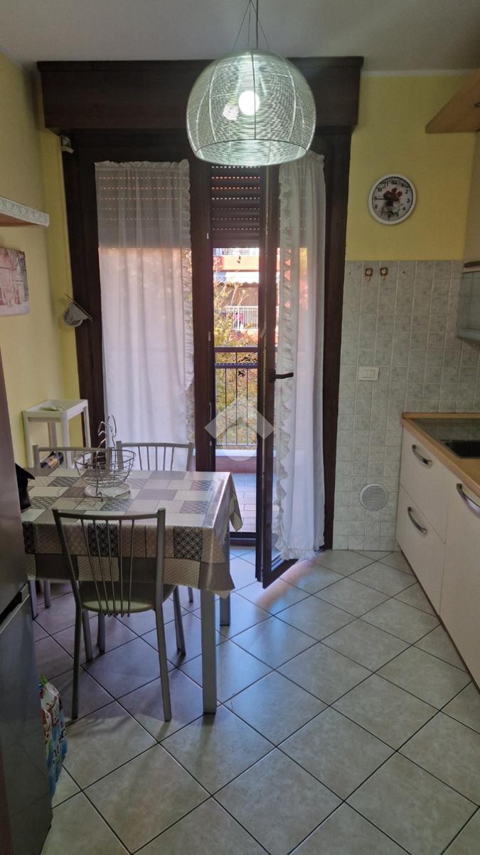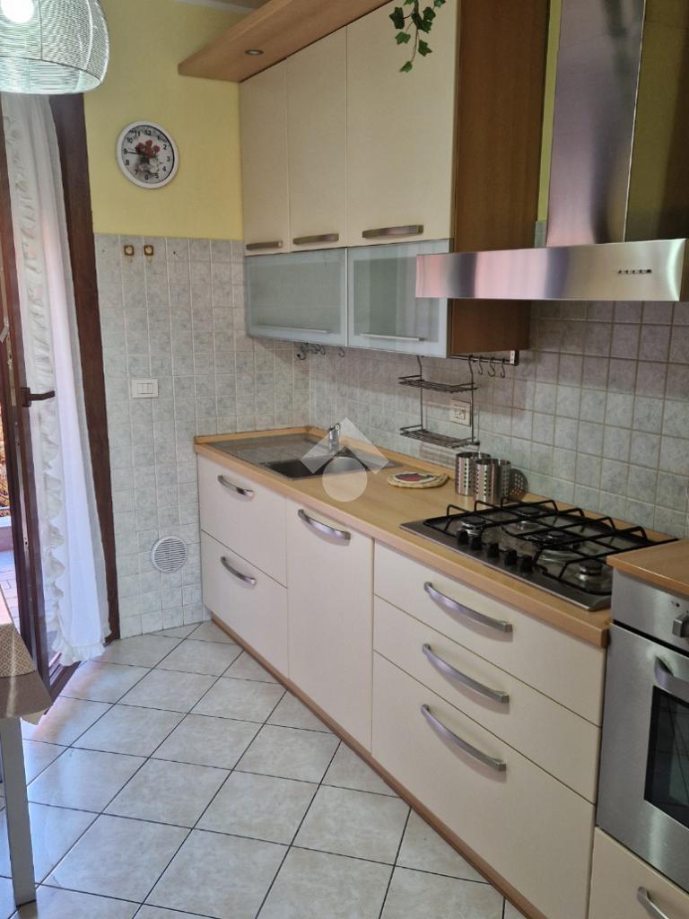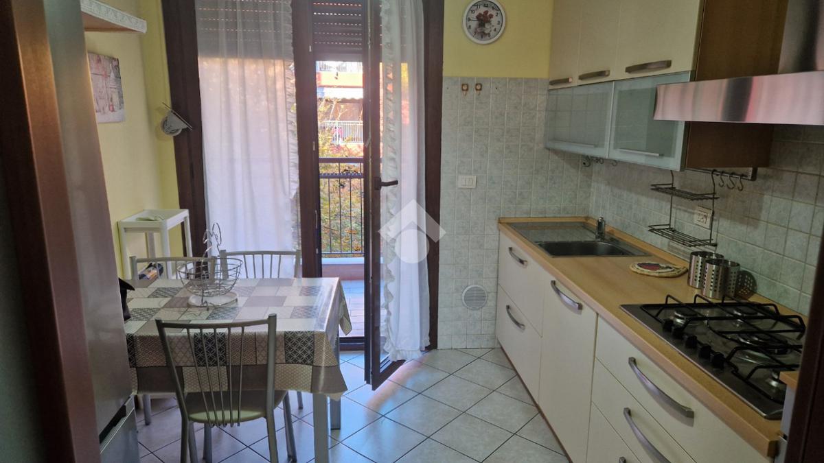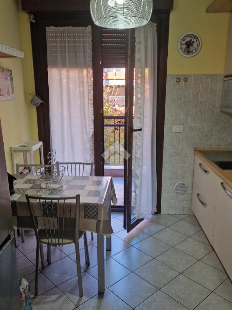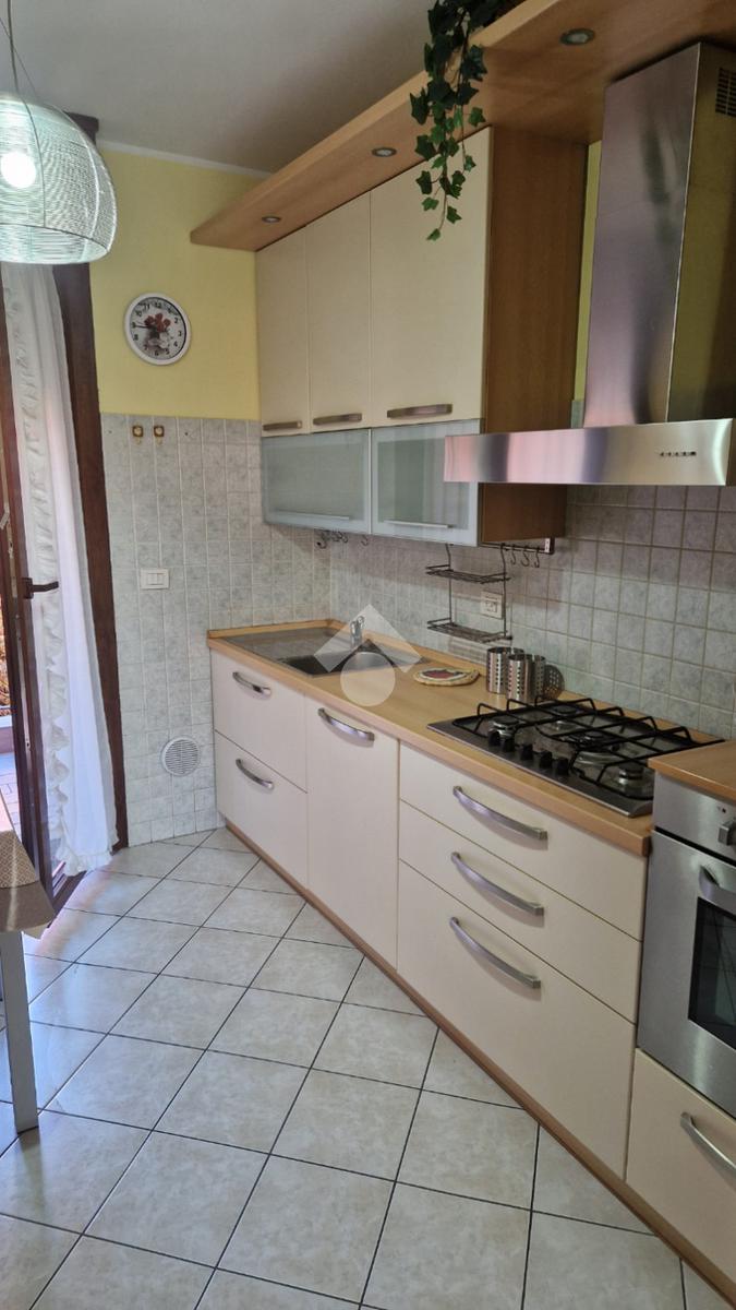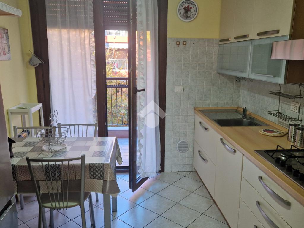 La cucina anch'essa con uscita sul balcone permette tranquillamente di pranzare in quattro persone.