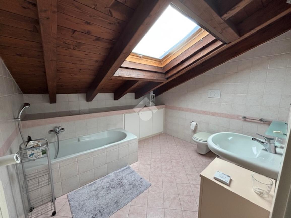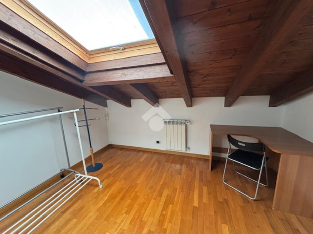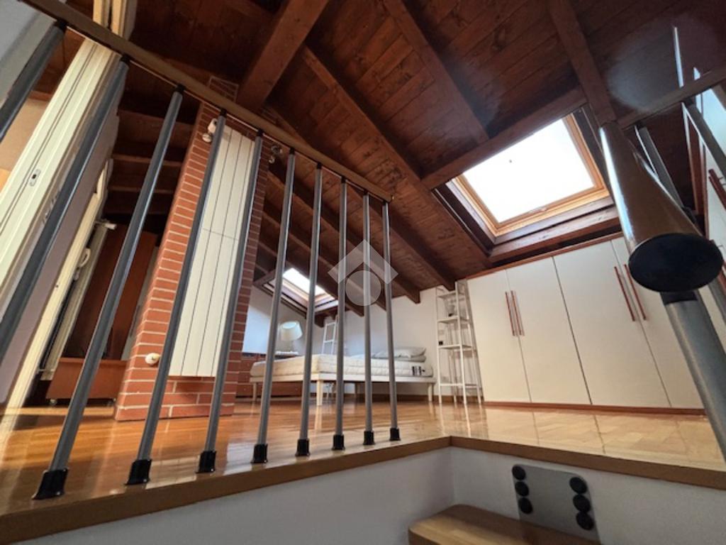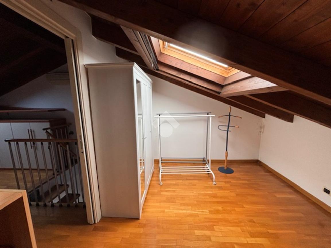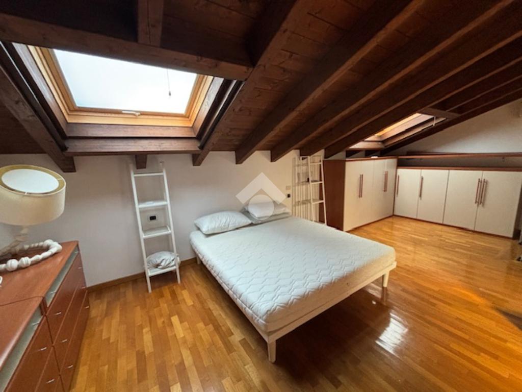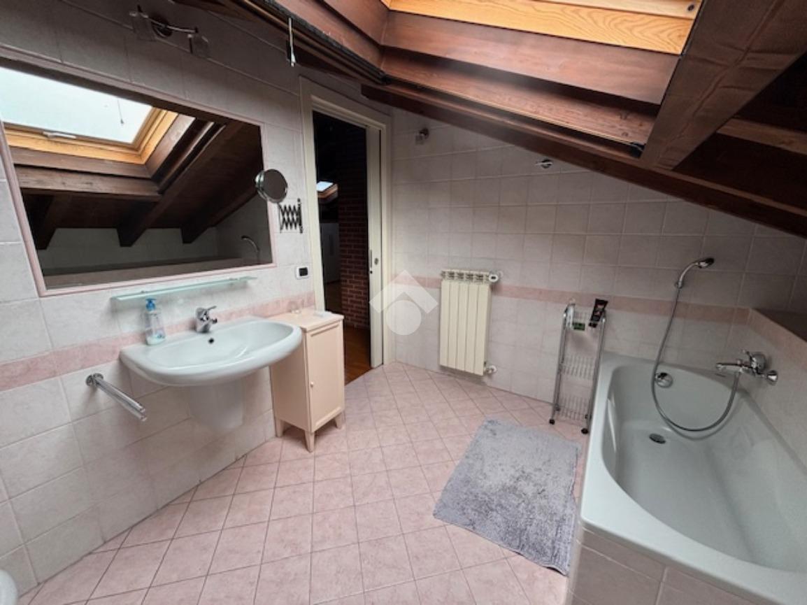 Una scala in legno conduce al piano mansardato, rifinito con travi a vista e reso luminoso da ampi lucernai dove troviamo una spaziosa camera matrimoniale, un locale studio/cabina armadio e un bagno con vasca.