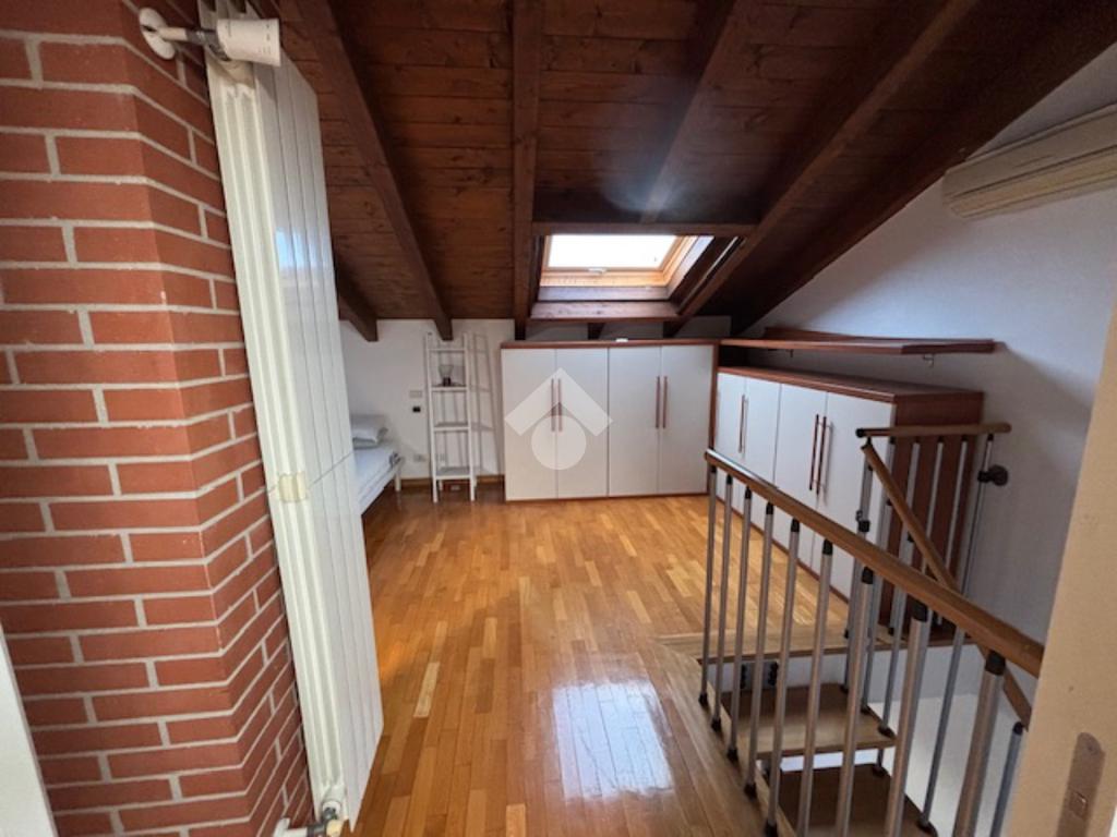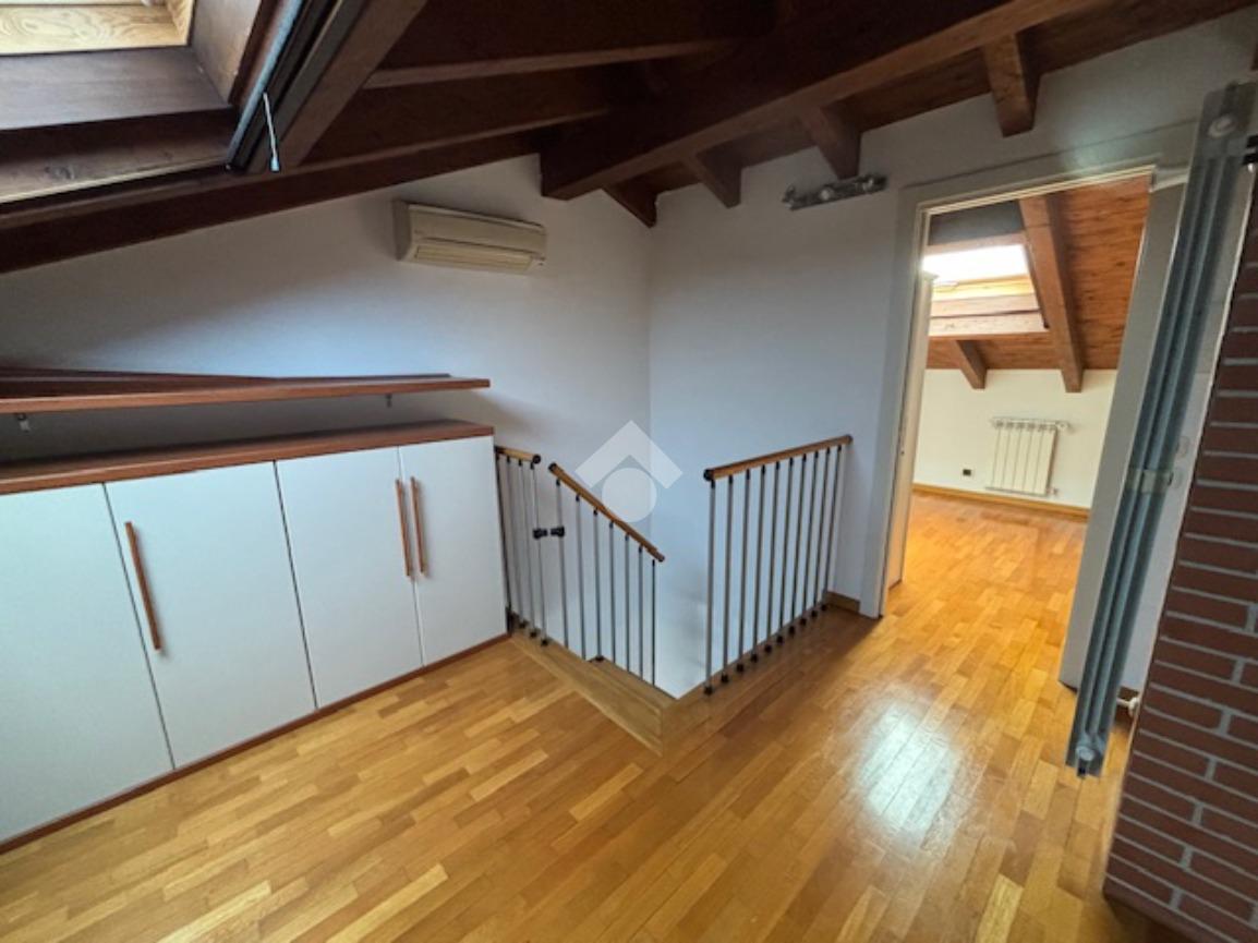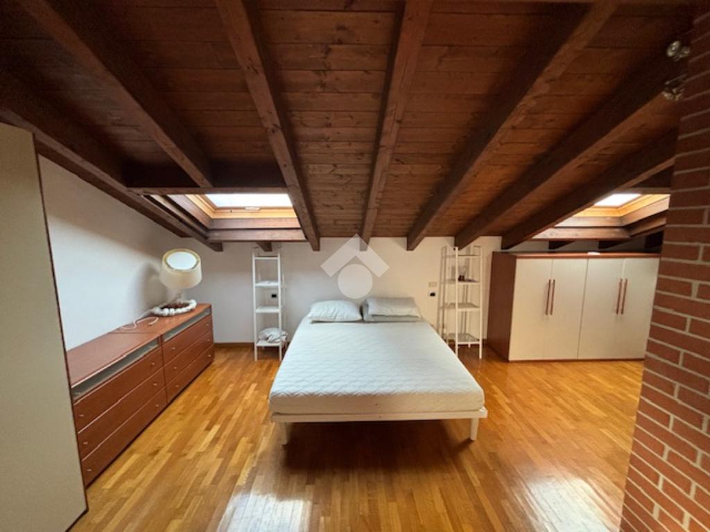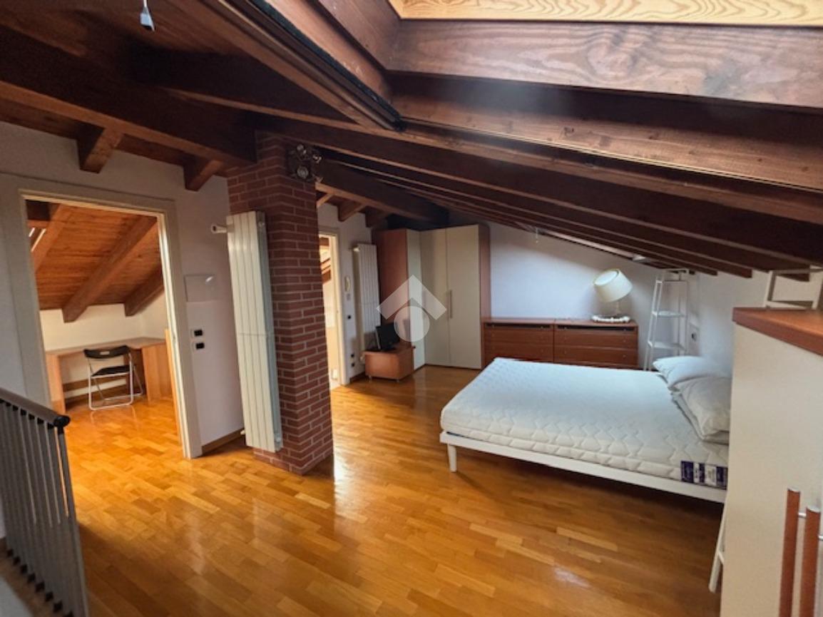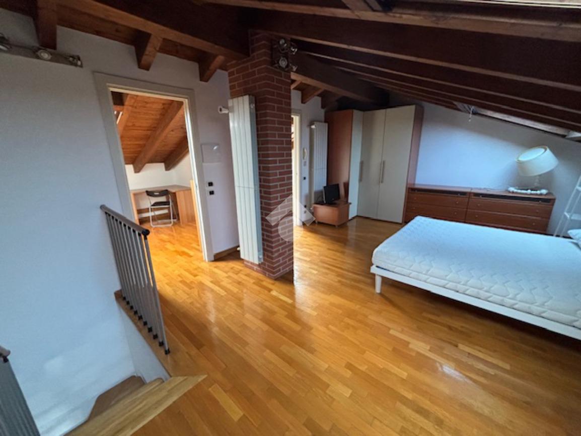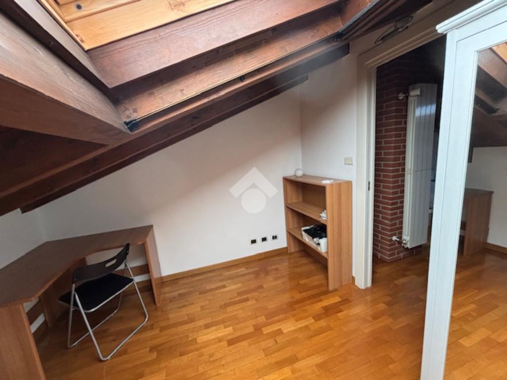 Una scala in legno conduce al piano mansardato, rifinito con travi a vista e reso luminoso da ampi lucernai dove troviamo una spaziosa camera matrimoniale, un locale studio/cabina armadio e un bagno con vasca.