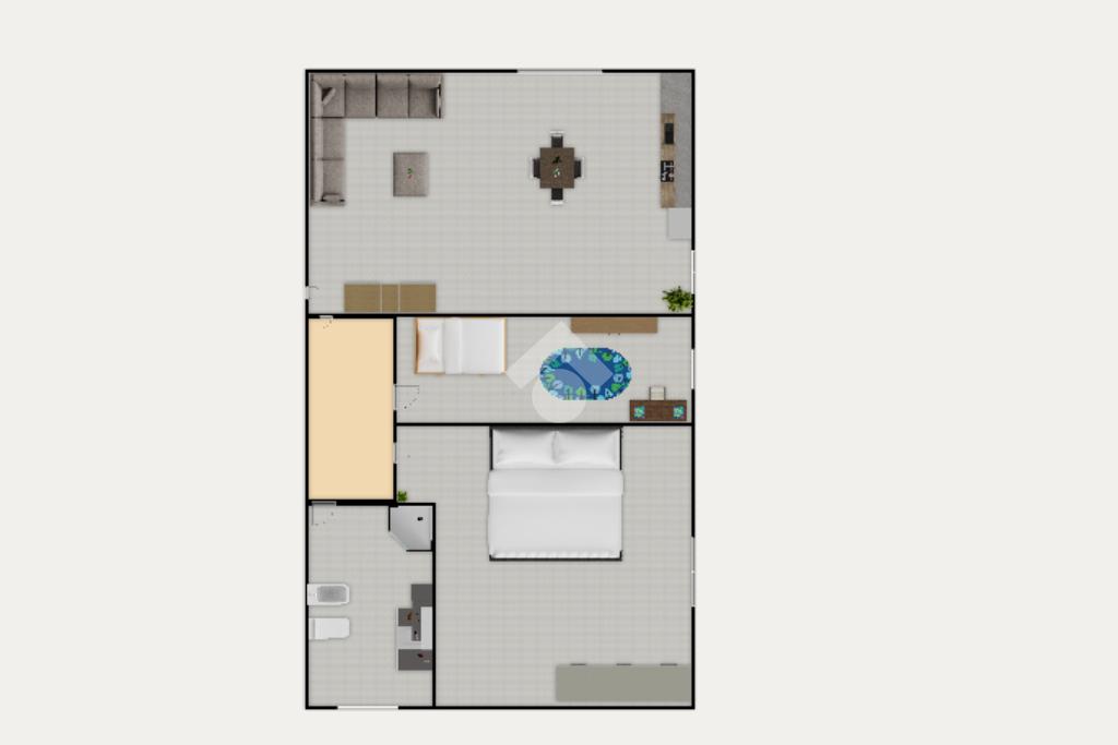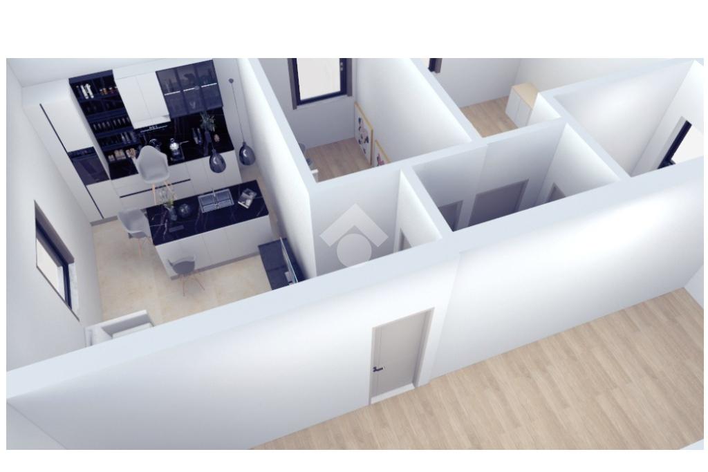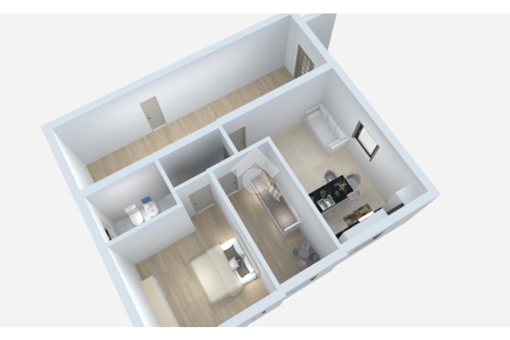 Entrati in casa ci accoglie il proporzionato reparto giorno con affaccio ovest, di facile arredamento visto la possibilità di collocare un piano cucina lineare. Un disimpegno notte, che non sottrae metratura alla casa, ci conduce alle due camere da letto e al bagno dotato di piatto doccia.