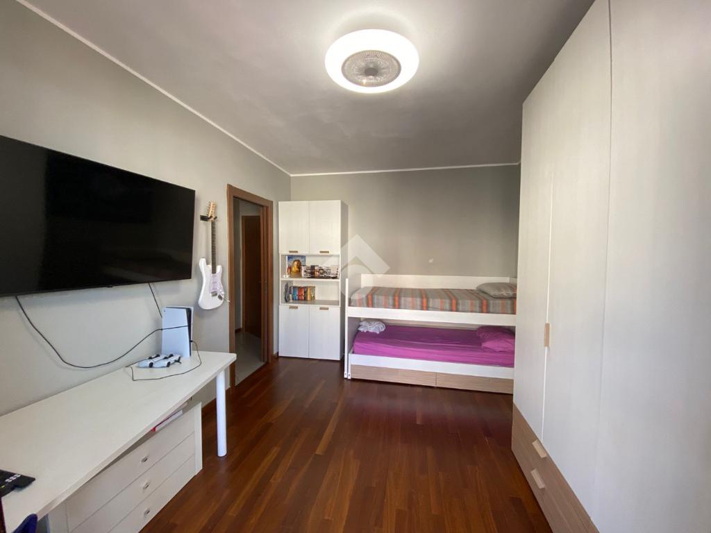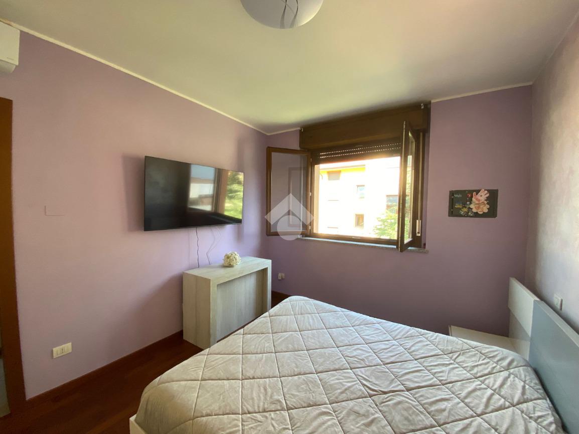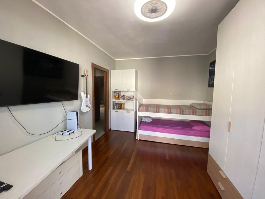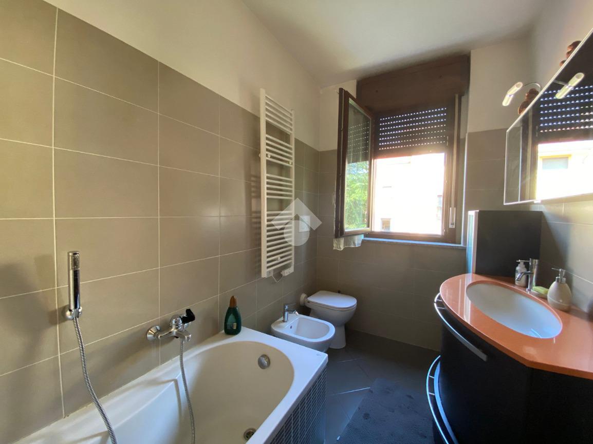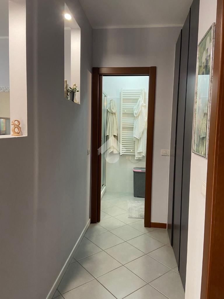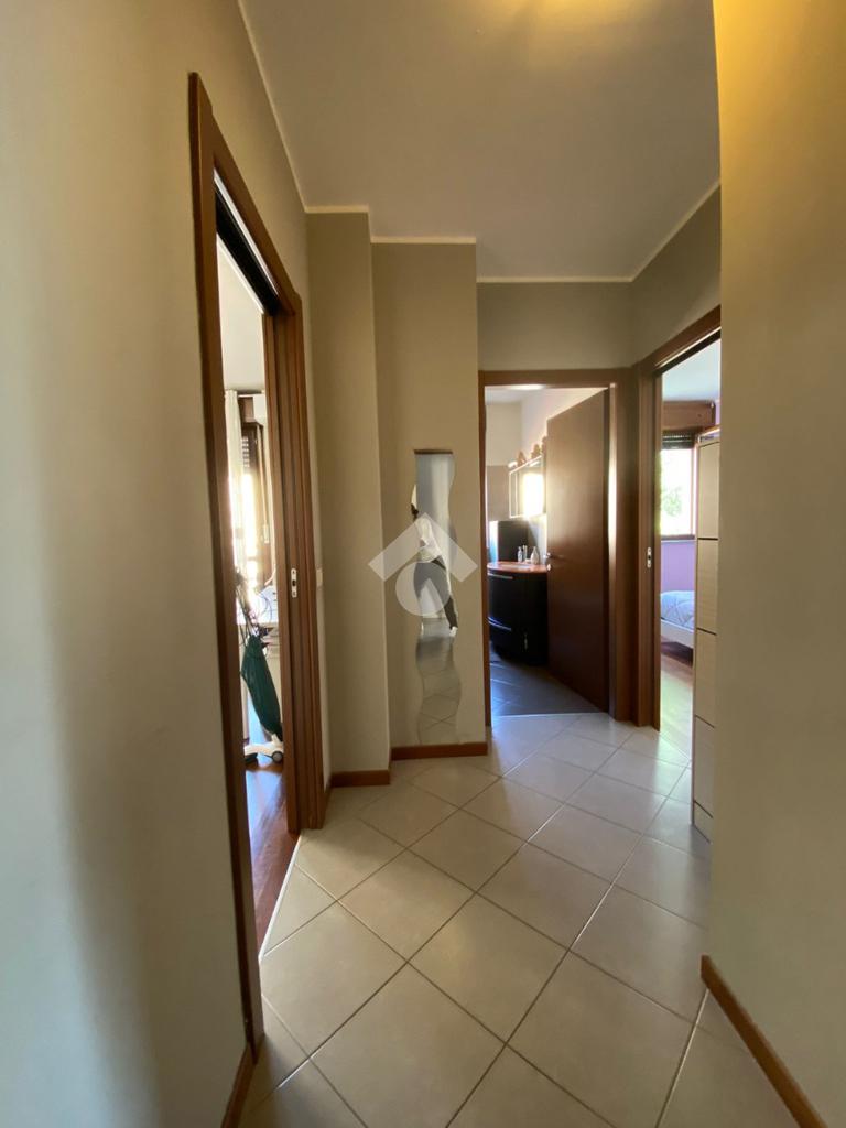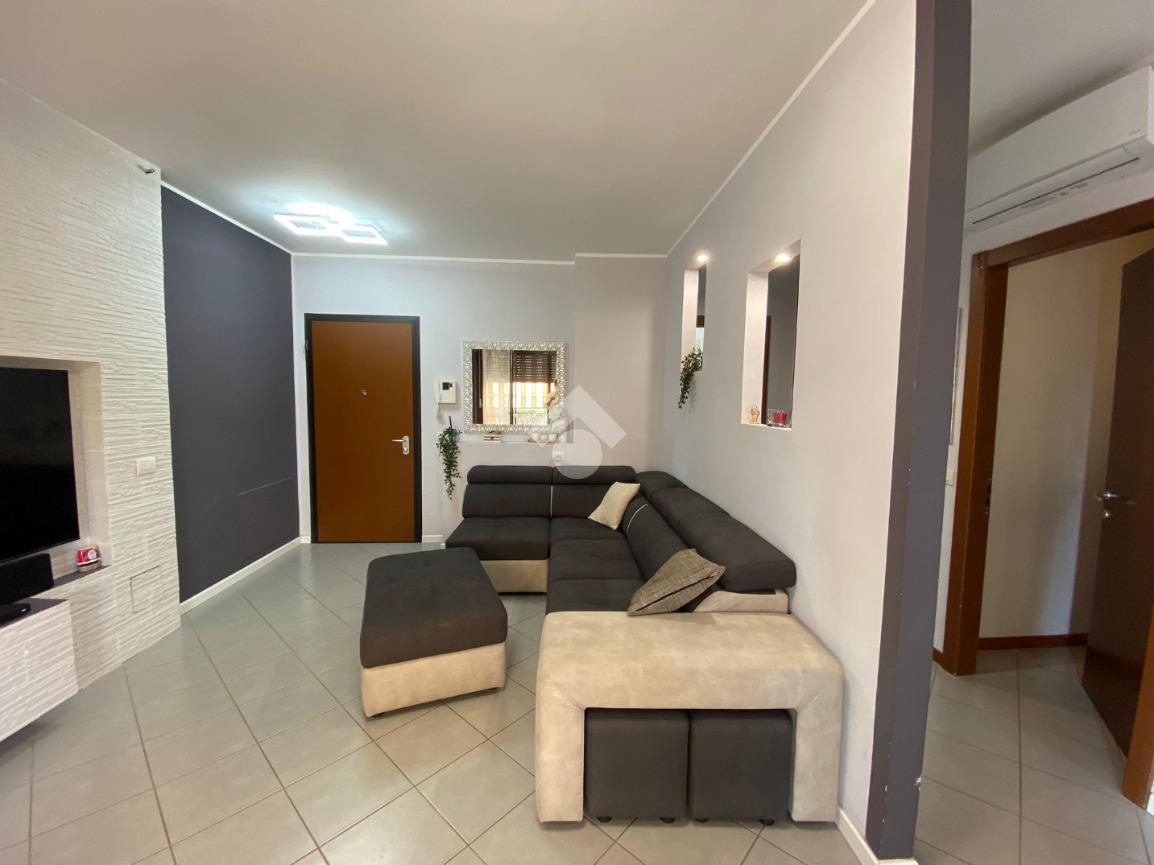 A servizio della zona giorno è presente un bagno con doccia, pratico e funzionale. Un disimpegno conduce alla zona notte, dove troviamo due camere da letto – di cui una con balcone – e un secondo bagno con vasca, riservato alla zona notte per una maggiore privacy. L'appartamento è dotato di riscaldamento centralizzato e completo di una comoda cantina fuori terra, facilmente accessibile e utile come spazio di deposito. Soluzione ideale per famiglie o coppie alla ricerca di un’abitazione moderna, funzionale e in un contesto tranquillo e ben servito.