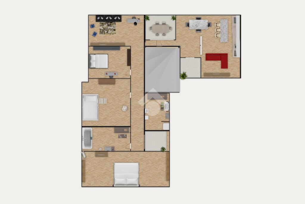 La zona giorno è caratterizzata da 2 terrazzi rispettivamente di 12 mq. e 9 mq. pertanto molto sfruttabili ma allo stesso tempo riservati essendo a tasca.