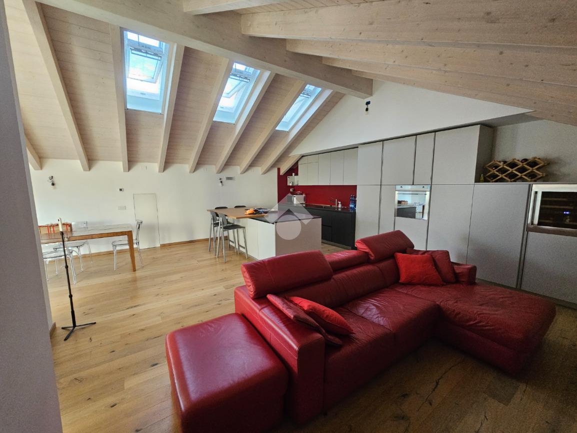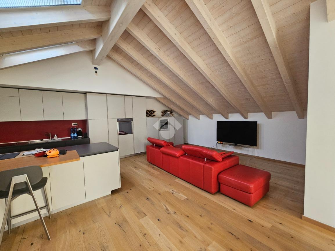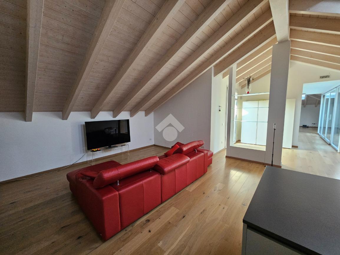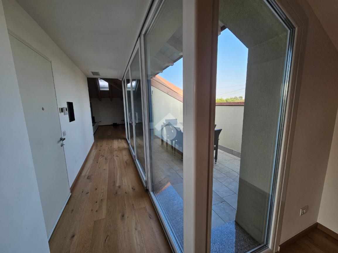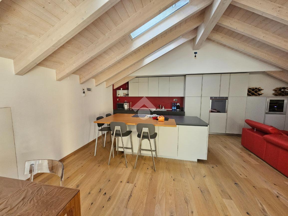 Zona Esselunga. Attico di recentissima costruzione caratterizzato dalle travi a vista bianche.