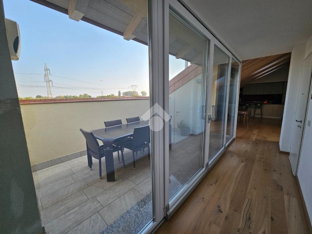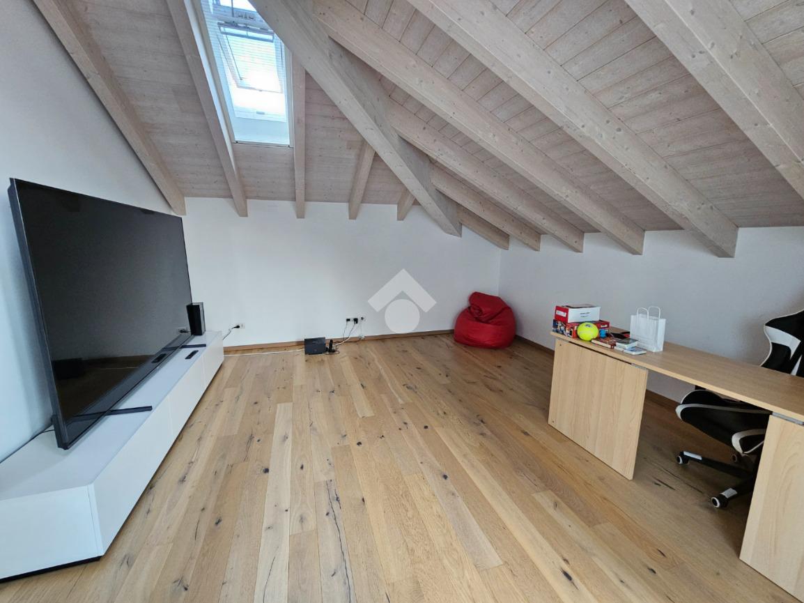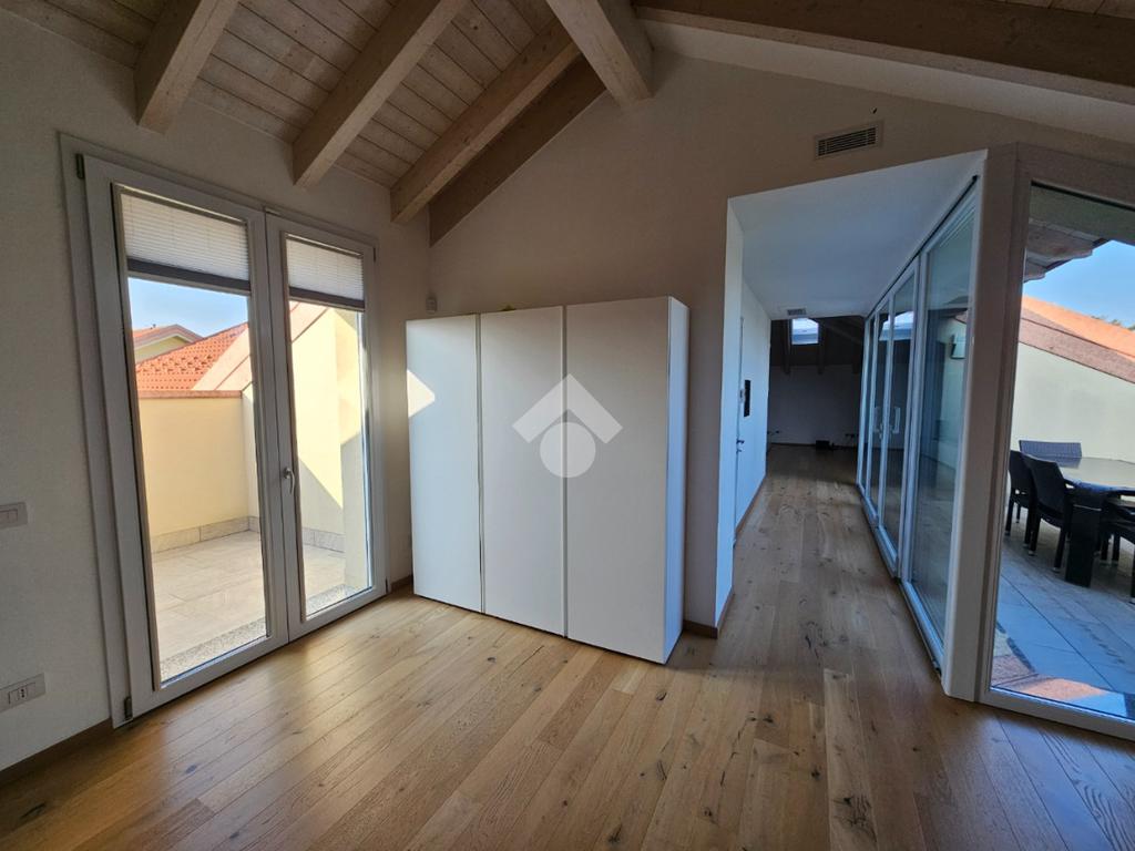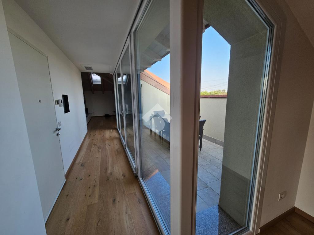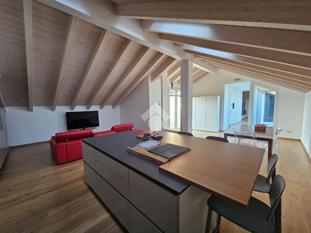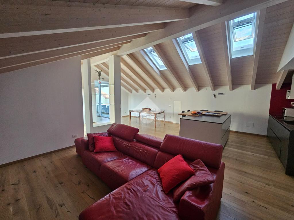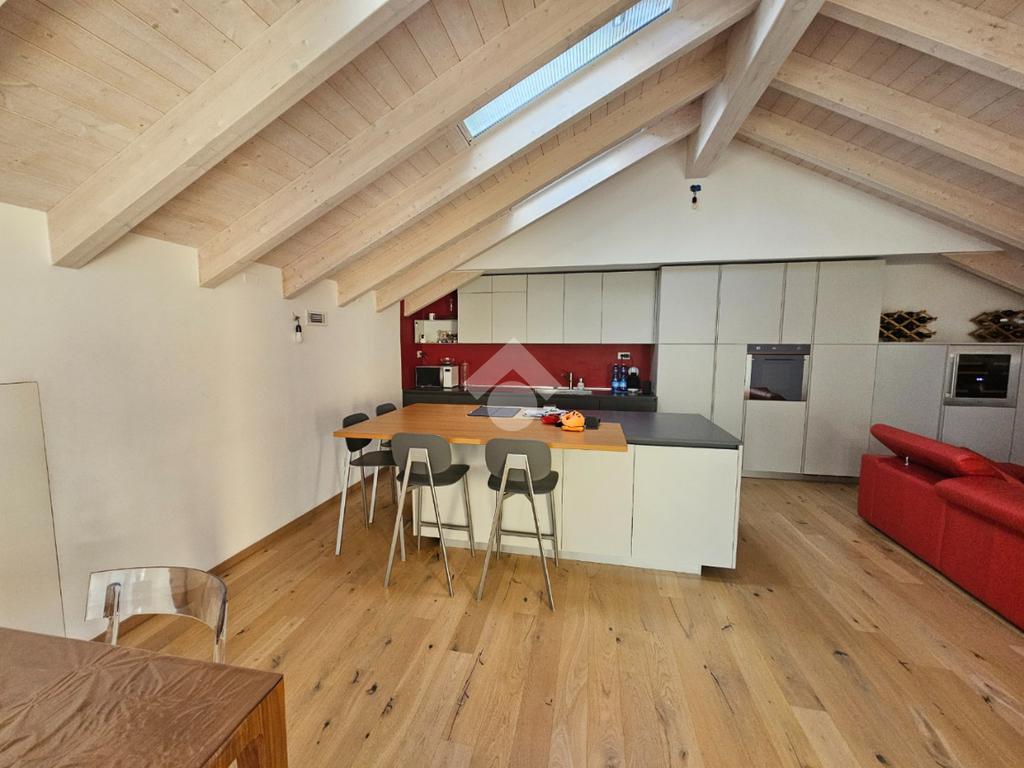 Zona Esselunga. Attico di recentissima costruzione caratterizzato dalle travi a vista bianche.