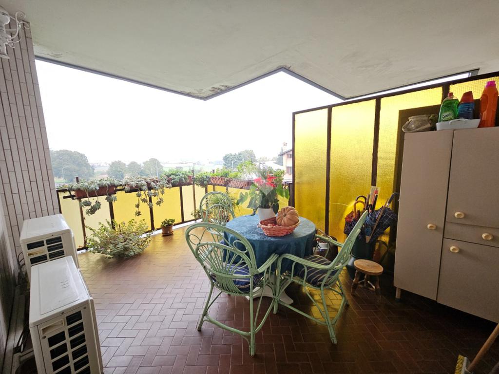 CORBETTA In mini palazzina ubicata nelle immediate vicinanze del centro storico, ampio tre locali ubicato all'ultimo piano libero su tre lati e dotato oltre che da balcone anche di un terrazzo coperto di mq. 14. L'alloggio è stato completamente ristrutturato negli anni e le migliorie degne di nota sono la sostituzione della porta d'ingresso con una blindata,videocitofono, serramenti in alluminio con doppi vetri e sostituzione di tutte le tapparelle, camino perfettamente funzionante, impianto di climatizzazione con pompa di calore in tutti i locali, tende da sole nuove, bagno rifatto e bascula box motorizzata e tanto altro...... Entrando nella zona giorno ci accoglie uno spazioso salotto dotato di camino con uscita diretta sul terrazzo coperto; la cucina di buone dimensioni permette di accogliere 4 commensali senza alcun problema ed inoltre è dotata di balcone di servizio. Il reparto notte è caratterizzato dalle spaziose camere da letto e da un bagno rifatto dotato sia di doccia che di vasca corta. Completa la proprietà cantina compresa nel prezzo e un box singolo ad € 15.000,00. Libero a breve.