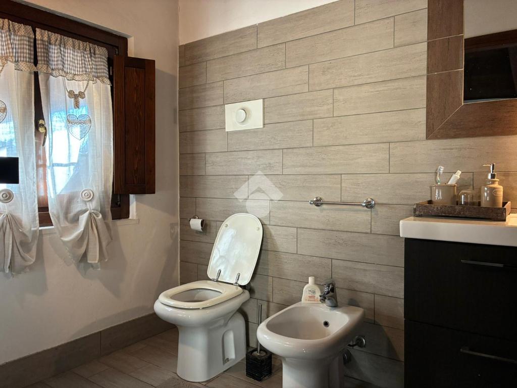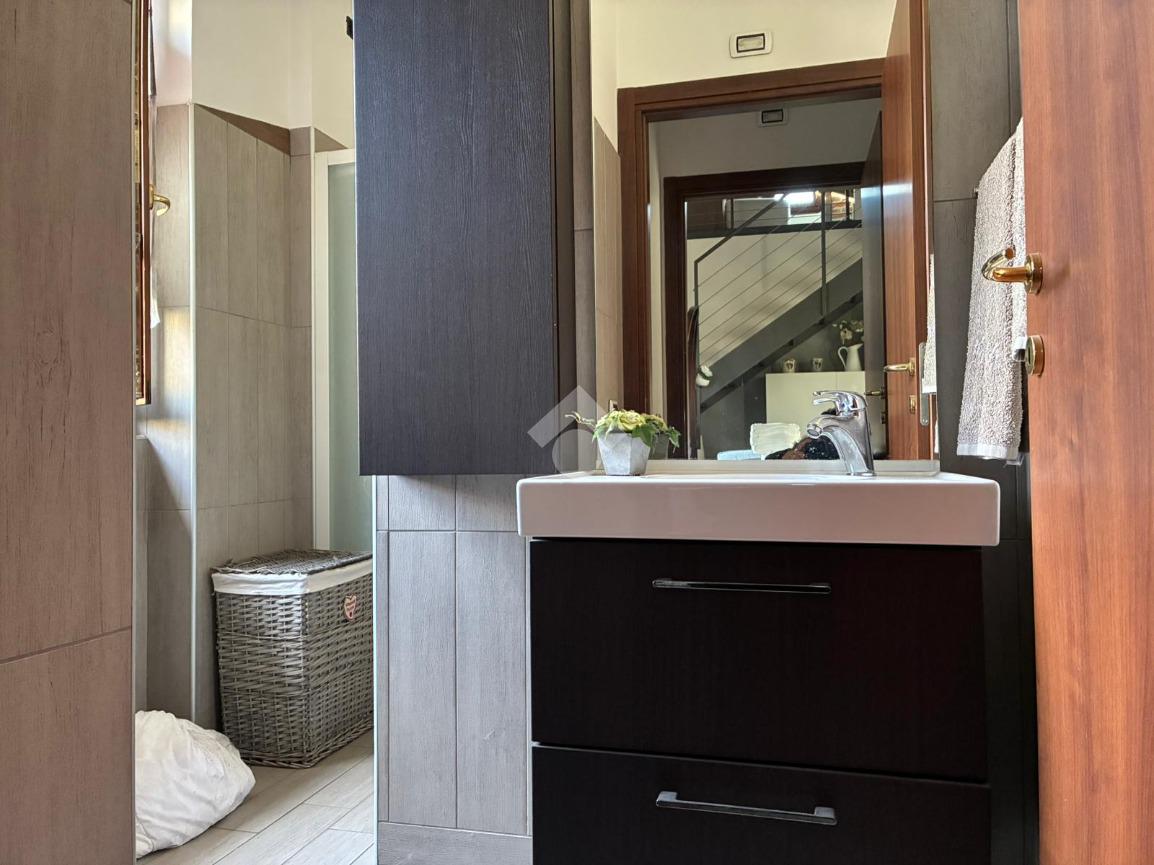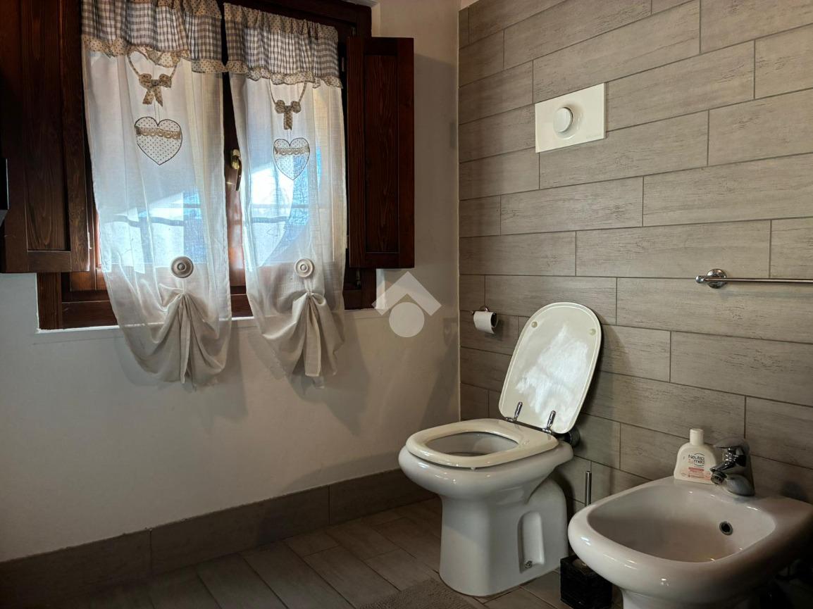 Dal soggiorno si accede a un bagno finestrato con doccia ben illuminato.