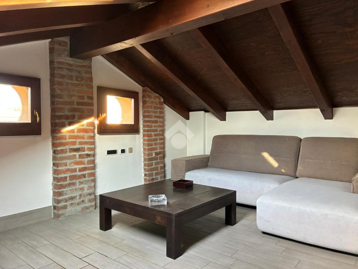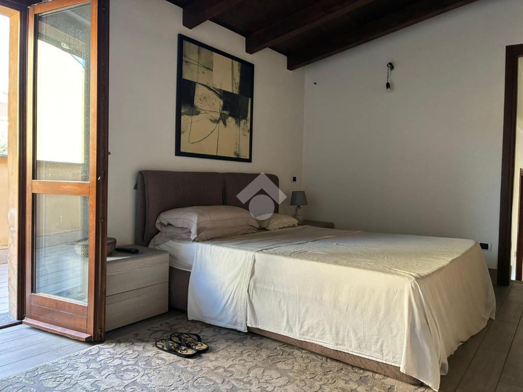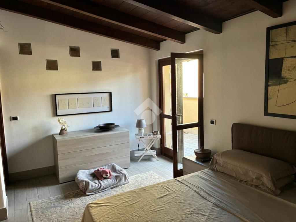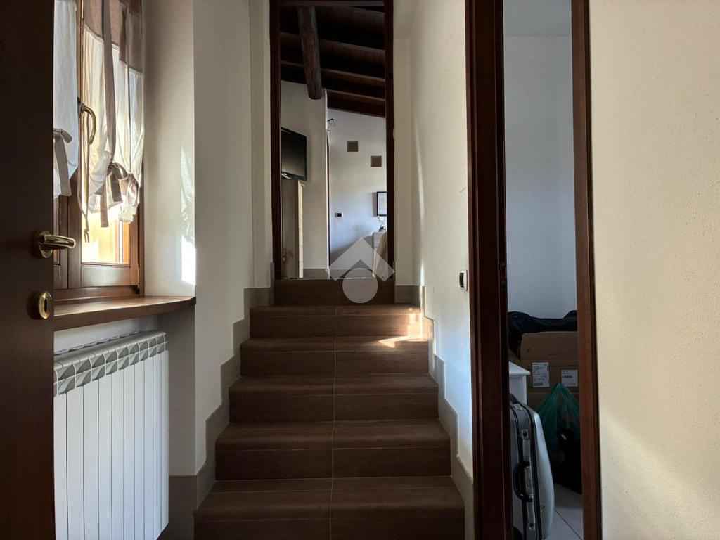 Dal soggiorno, una scala conduce al soppalco, in cui sono presenti una zona relax e uno studio, impreziosito dalle travi a vista, che donano carattere e un importante valore aggiunto all’abitazione.