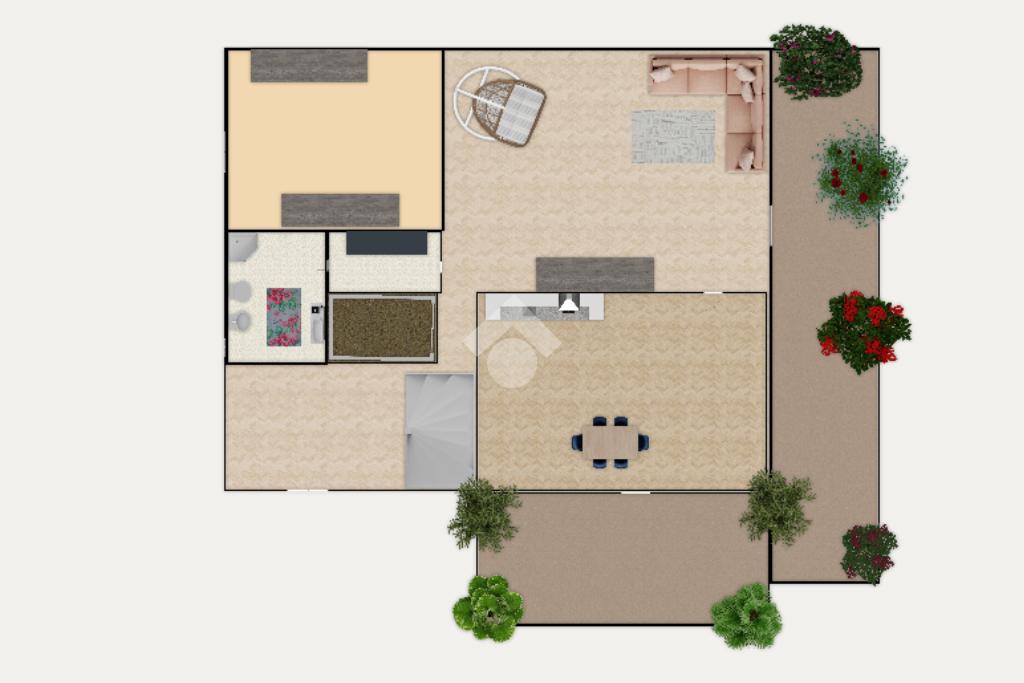 è dedicato al reparto giorno e nello specifico troviamo un ampio soggiorno con esposizione a est che affaccia sul giardino privato, una cucina abitabile a vista di oltre 20 mq. caratterizzata da due porte finestra con uscita sul terrazzo. Uno studio, un bagno e un locale hobby completano il piano.
