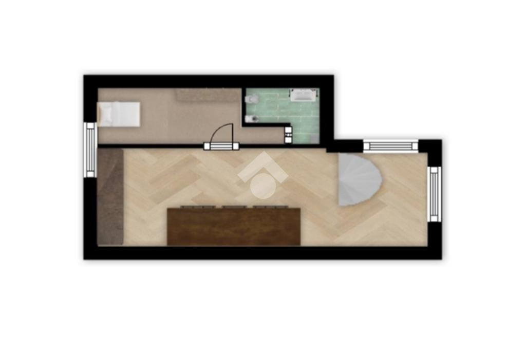 Il piano superiore mansardato, raggiungibile in origine tramite scala a chiocciola (attualmente rimossa), ospita due locali pluriuso e un secondo bagno, offrendo ulteriori spazi personalizzabili in base alle proprie esigenze abitative.