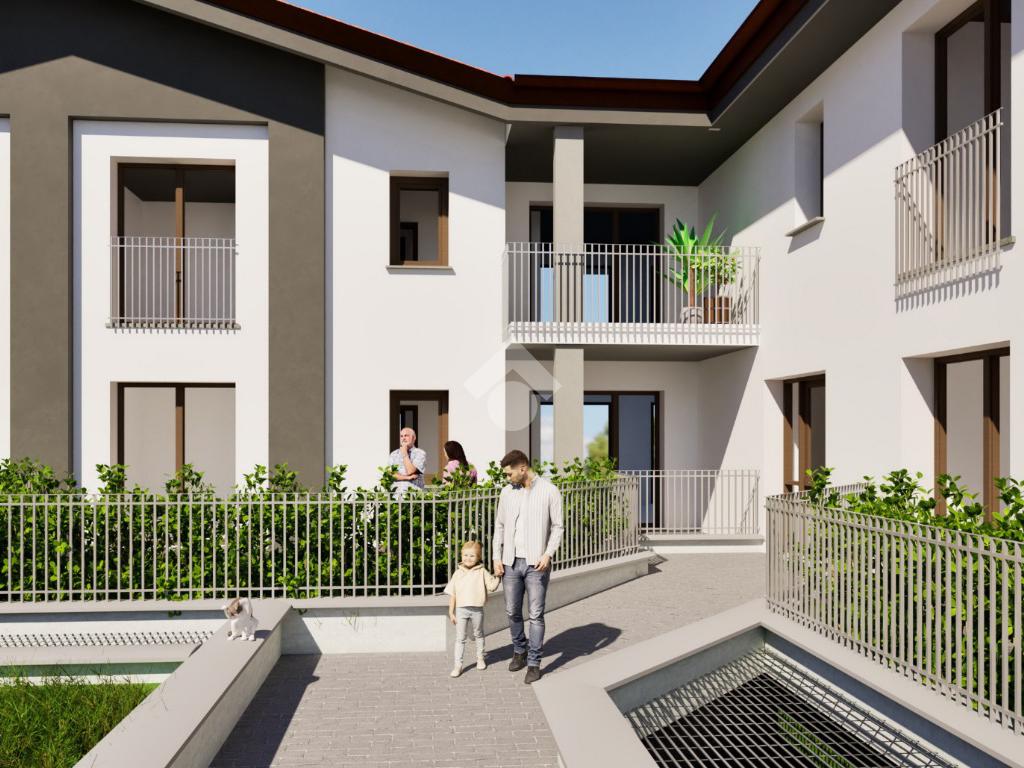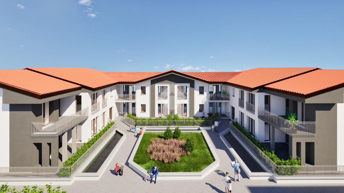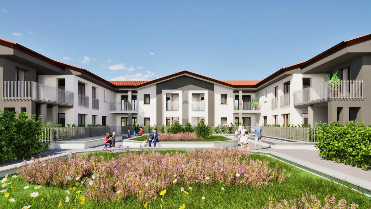 Le unità abitative sono inserite in un fabbricato a C che prevede due piani fuori terra e tetto a falde su cui verrà installato l’impianto fotovoltaico, con un'ampia corte interna che richiama il fascino delle corti lombarde e offre uno spazio di tranquillità e socializzazione.