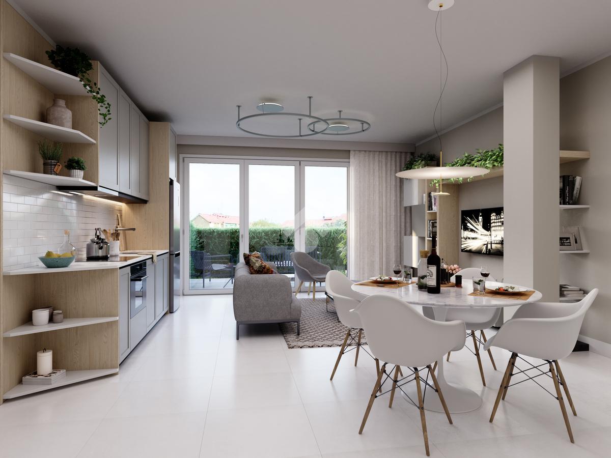 Entra e lasciati conquistare dalla zona giorno open-space, un ambiente moderno e accogliente perfetto per condividere momenti speciali con famiglia e amici. Immagina cene conviviali e serate rilassanti, illuminate dai raggi del sole che filtrano dalle ampie vetrate.